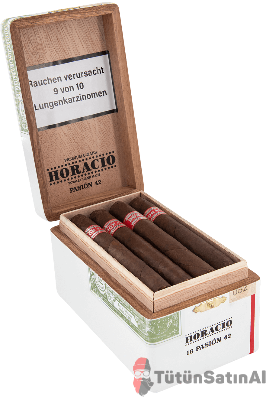 Horacio Pasión 42 Puro, aromaların katmanlı yapısıyla öne çıkar. Hafif baharat ve ceviz notaları ile başlayan yolculuk, zamanla sütlü kahve ve vanilyaya dönüşür. Orta bölümlerden itibaren puro daha da zenginleşir; topraksı bir temel üzerinde gelişen tatlar damağınızda kalıcı izler bırakır. Her bir nefeste yeni bir detay keşfetmek mümkündür. Puro içtikçe bu zengin aromalar giderek belirginleşir ve keyif verici bir bütünlük oluşturur. Hafif içimli ancak zengin tatlara sahip olan bu puro, aromatik denge arayanlar için ideal bir seçenek sunar.