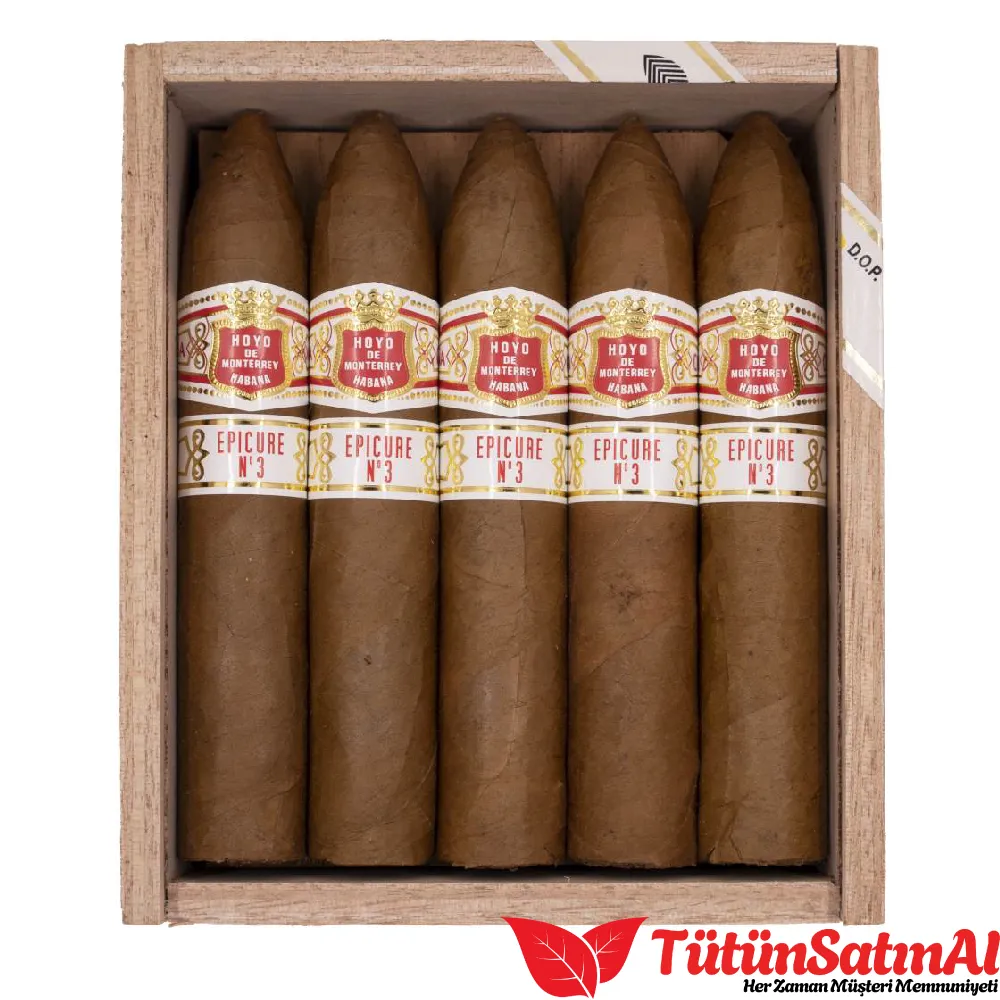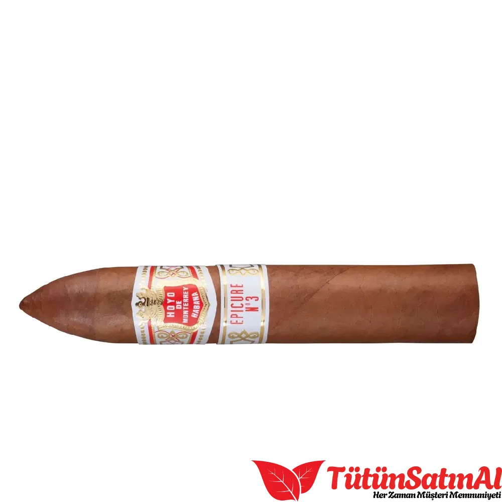 Hoyo de Monterrey Epicure No. 3, prestijli Küba markası Hoyo de Monterrey tarafından Habanos S.A. üretimiyle sunulan, premium el yapımı bir purodur. Ödüllü “Epicure” serisinin parçası olan bu vitola, zarif, orta gövdeli bir deneyim sunar; yoğunluk yerine incelik, uyum ve nüanslı tatlara odaklanır. Corona Gorda boyutunda olan bu puro, 60–75 dakikalık tatmin edici bir içim sağlar ve farklı durumlar için çok yönlüdür; markanın karakteristik zarafetini yansıtır.