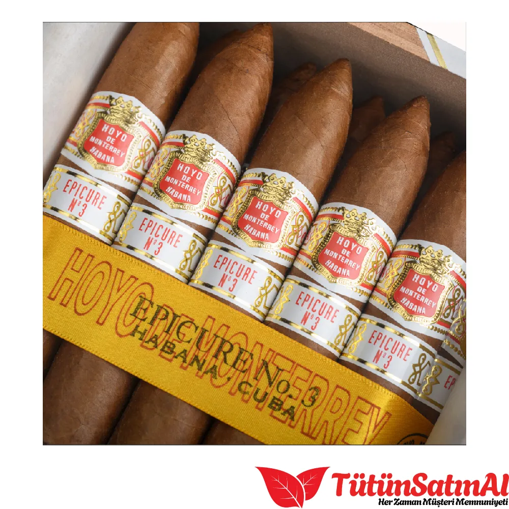 Hoyo de Monterrey markası, 1865 yılından bu yana Küba puro kültürünün saygın temsilcilerinden biridir. Bu modelde uygulanan özel el yapımı üretim süreci ve kalite kontrol standartları marka imajını pekiştirir. Epicure No.3 serisi, markanın klasik çizgisini modern içim tercihlerine uyarlayan bir adımı temsil eder. Tütün yapraklarından sargısına kadar her aşama özenle yürütülmüştür.